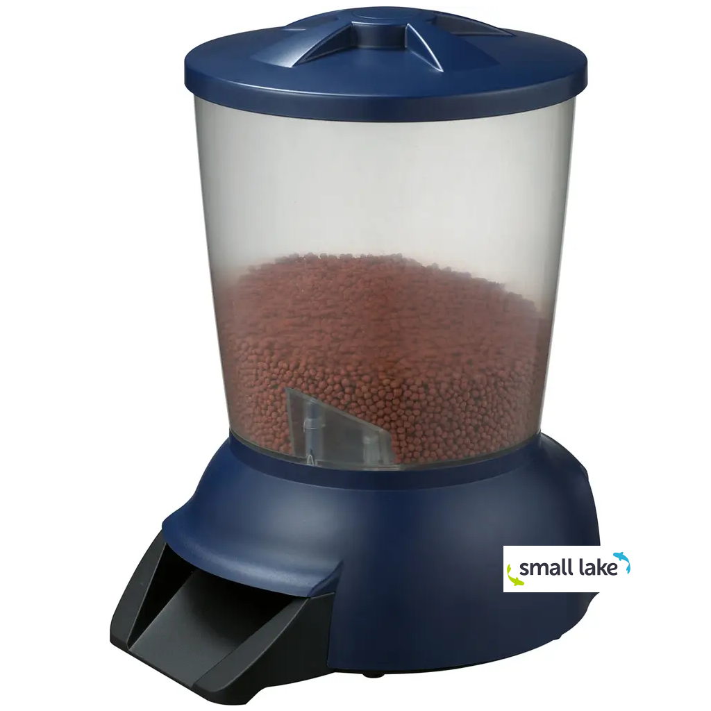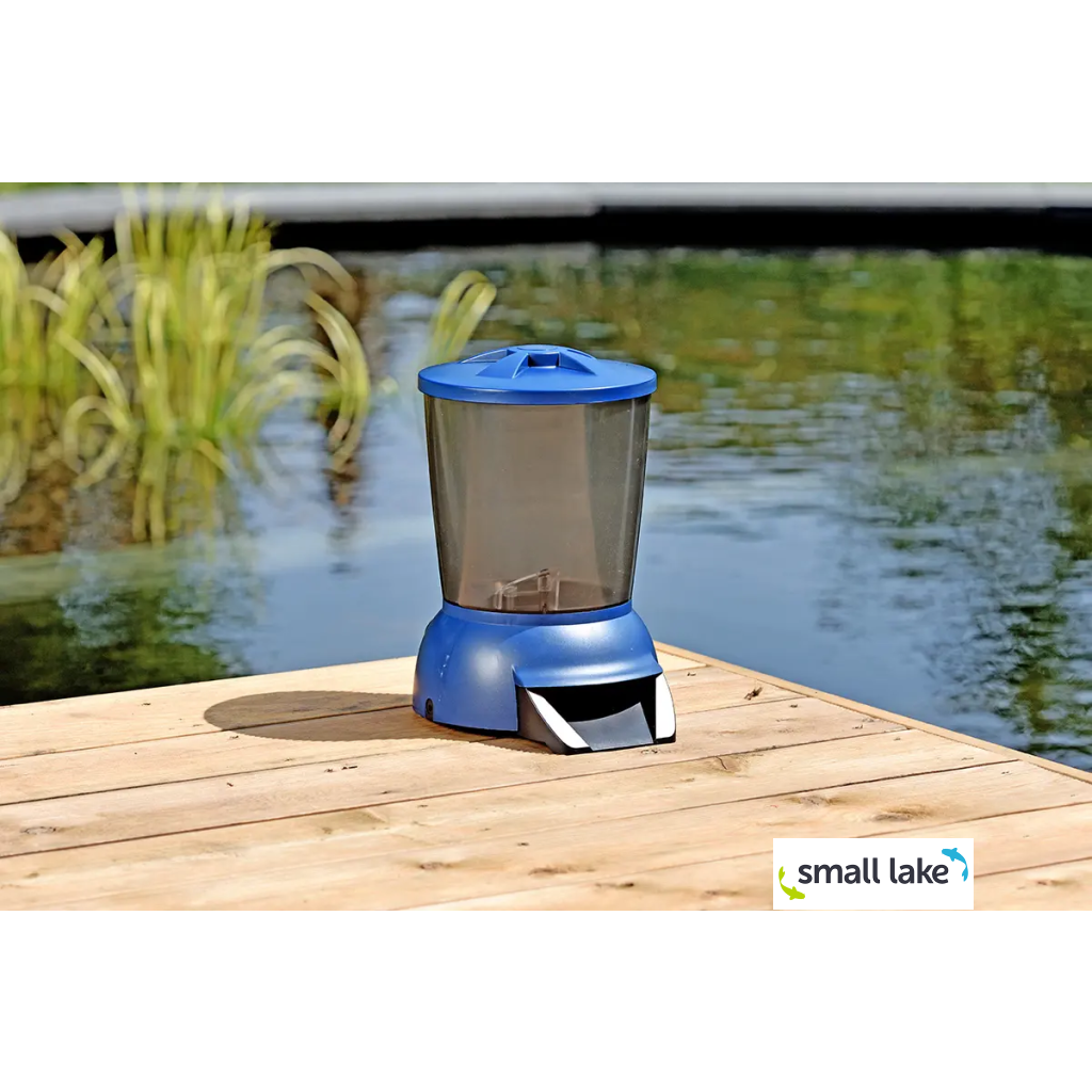Odnímatelná nádoba na krmivo s kapacitou 5 litrů se snadno čistí i doplňuje. Součástí balení jsou držáky a montážní materiál pro jednoduchou instalaci na okraj jezírka.
