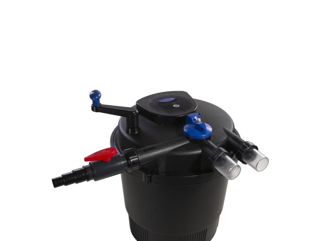 Veškerá elektroinstalace a funkční prvky jsou uzavřené a tak můžete filtr bez problému schovat do země vedle jezírka pod kámen.