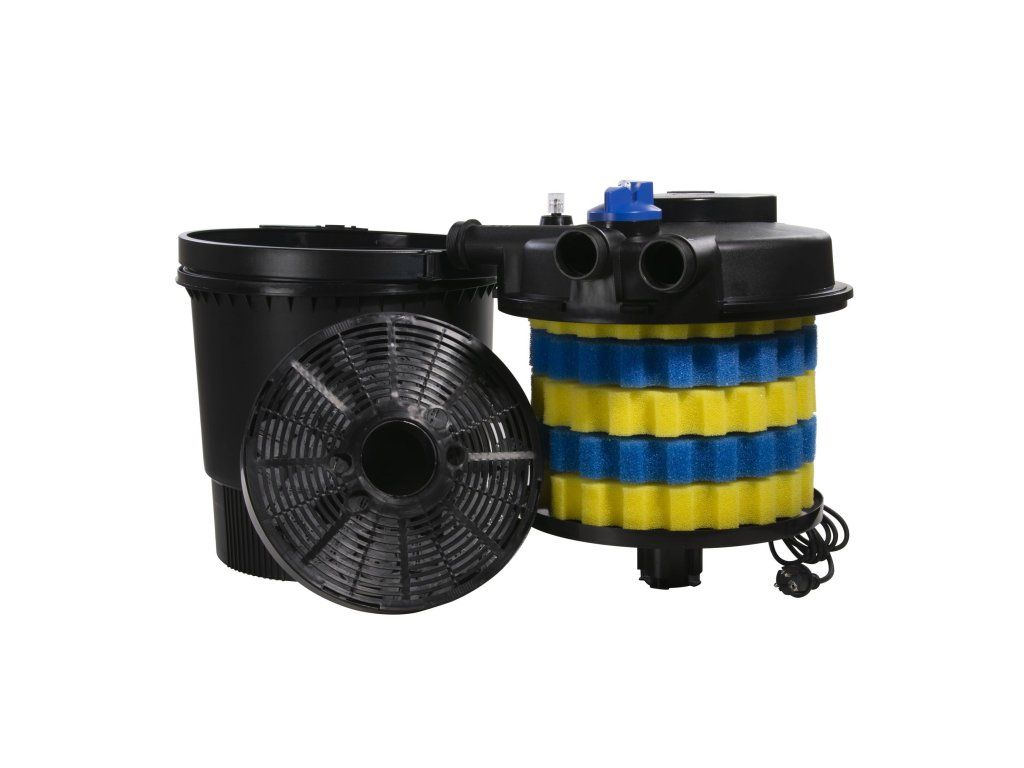- Účinná filtrace jde skrze speciální filtrační materiály, jako je žlutá a modrá houba s různými rychlostmi průchodu vody, která mají velký povrch a to umožňuje osídlení bakteriemi. Tento filtr navíc obsahuje bio kuličky tzv. "Bio-balls", které poskytují další prostor pro osídlení bakteriemi a navíc prokysličují vodu. Filtrační média jsou součásti balení.