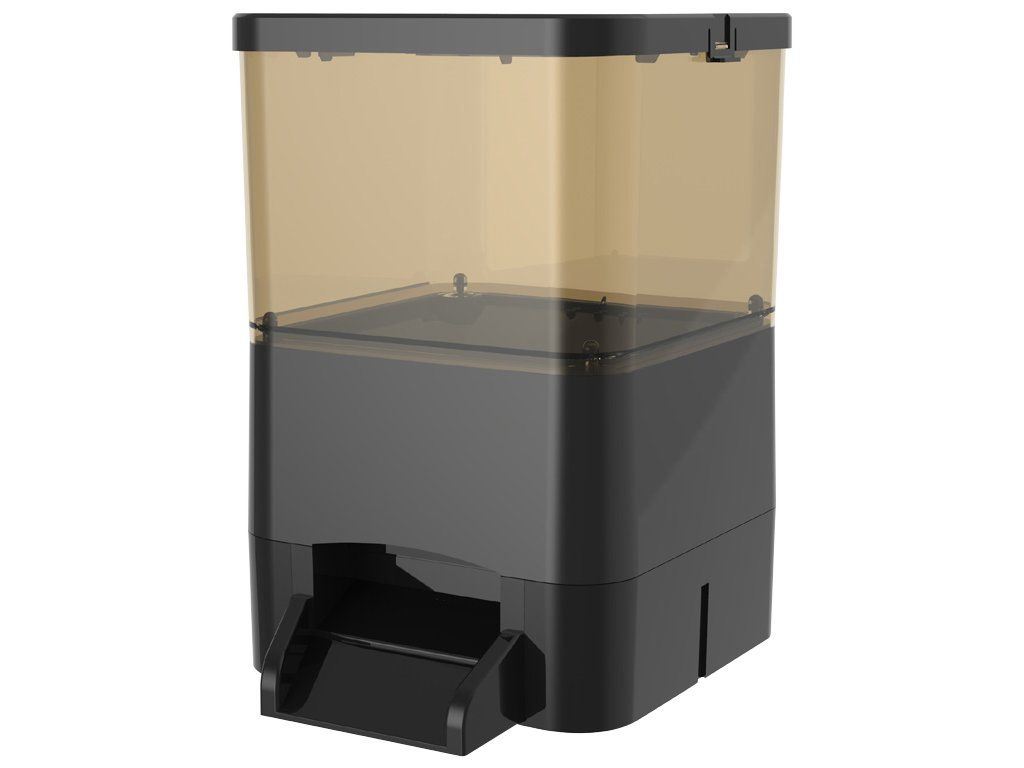 S kapacitou 8 litrů, rozšiřitelnou na 15 litrů, je toto krmítko schopné uspokojit potřeby i větších chovů. Bez obav z výpadku proudu, krmítko si pamatuje nastavení díky záložní paměti. Standardní napájení zajišťují 4 AA baterie, ale můžete využít i dobíjecí baterii s nabíječkou, solární panel nebo síťový adaptér.
