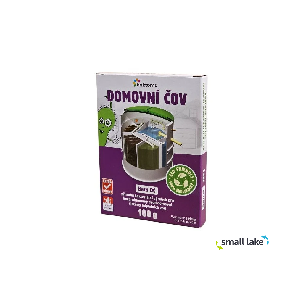 Přípravek BACTI DC obsahuje směs aktivních bakterií a enzymů, které po aplikaci podporují správný biologický proces v čistírně a zajišťují její dlouhodobě stabilní chod. Je 100% přírodní, šetrný k životnímu prostředí a vhodný pro běžný i nepravidelný provoz (pro rodinné domy s domovní ČOV, pro chaty a rekreační objekty s nepravidelným provozem, při výskytu zápachu, pěny nebo nadměrného kalu, po použití chemie, dezinfekce nebo při novém spuštění ČOV).