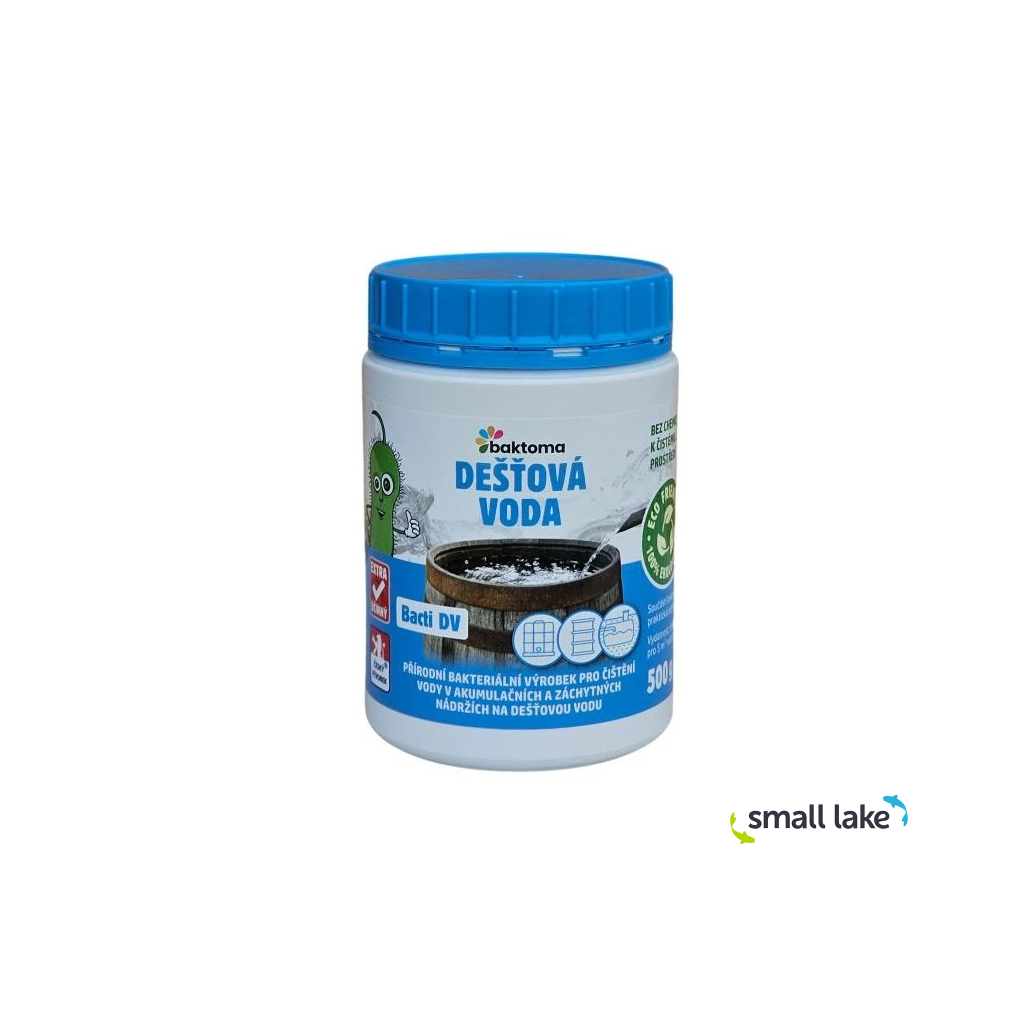 Bacti DV jsou extra účinné přírodní bakterie určené pro jímky a nádrže na dešťovou vodu. Pomáhají udržet vodu čistou, čirou a bez zápachu, omezují růst řas a rozkládají organické nečistoty, jako je pyl, prach nebo zbytky listí. Ideální řešení pro dešťovou vodu používanou k zalévání, splachování WC nebo jako technickou vodu v domácnosti.