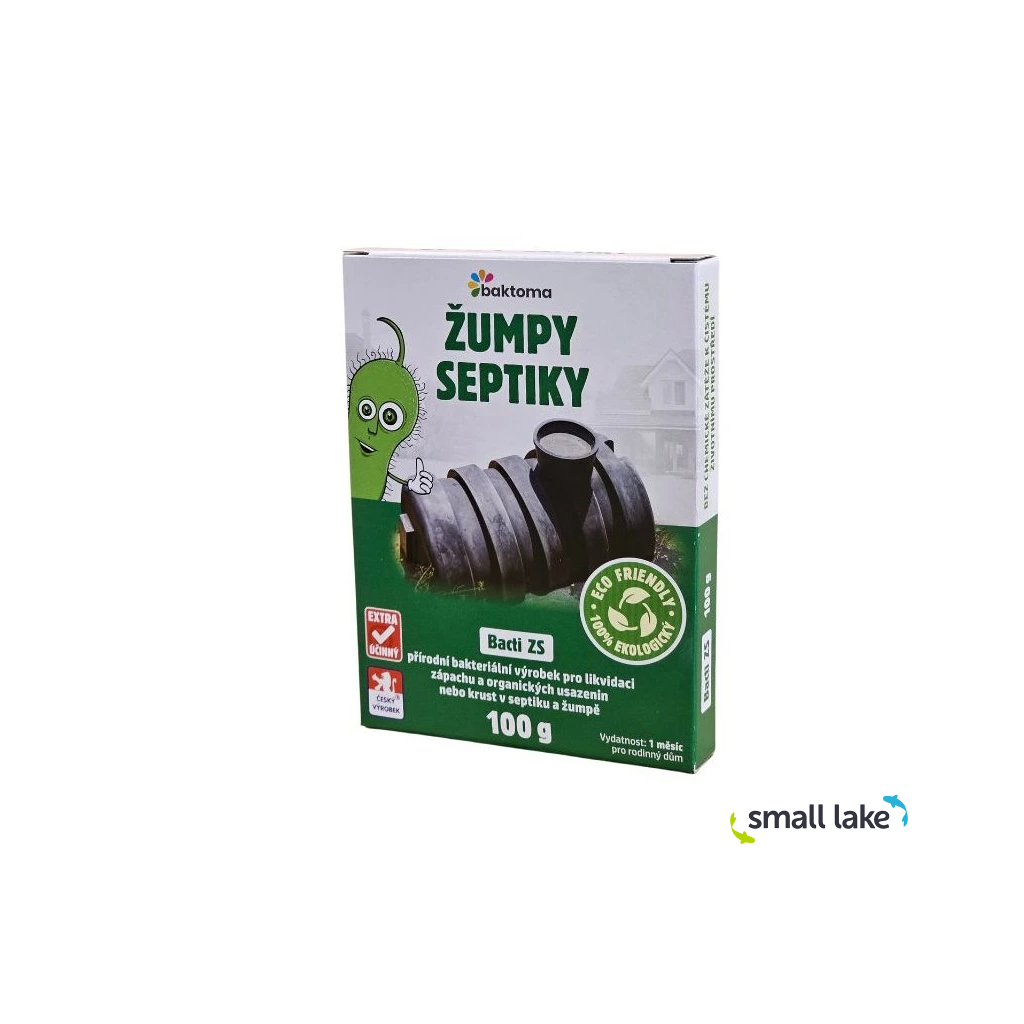 Bacti ZS je směs miliard aktivních bakterií a enzymů, které obnovují biologickou rovnováhu v odpadní nádrži. Udržuje žumpu nebo septik čistý, průtočný a funkční po celý rok a je šetrný k životnímu prostředí. Suchá směs probiotických bakterií a enzymů je určená pro domácí žumpy, septiky a malé odpadní systémy. Po aktivaci ve vodě bakterie rozkládají organický odpad a pomáhají udržet nádrž bez zápachu a nadměrného kalu.