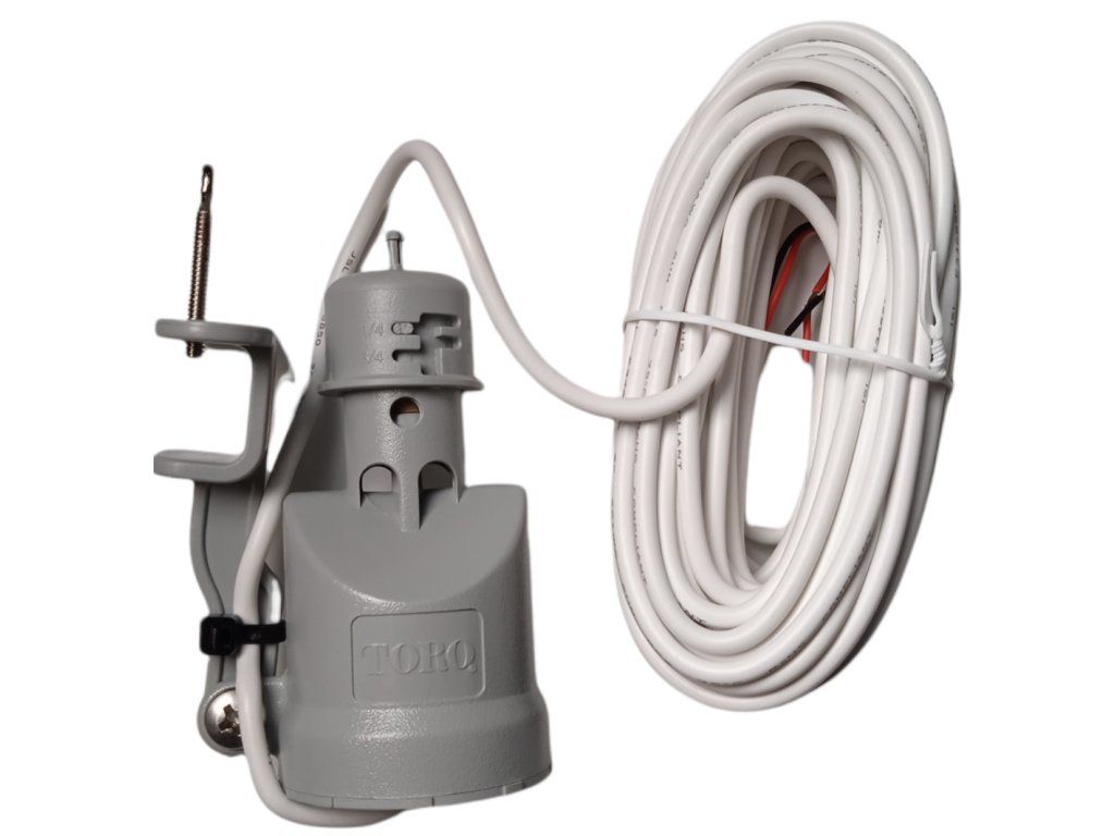 Toro RainSensor TRS je spolehlivý kabelový dešťový senzor navržený pro optimalizaci zavlažování vaší zahrady. Tento senzor detekuje srážky a automaticky přerušuje zavlažovací cyklus, čímž zajišťuje efektivní využití vody a zabraňuje přemokření rostlin. Díky robustní konstrukci a odolnosti vůči povětrnostním vlivům poskytuje dlouhodobou spolehlivost.