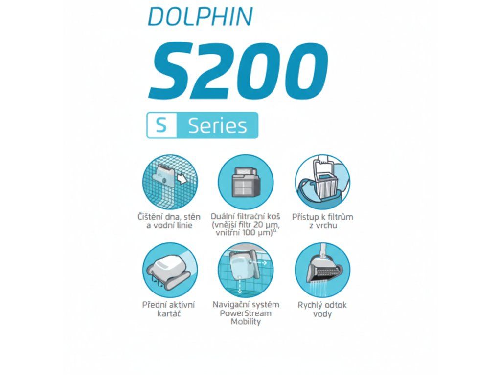 Automatický bazénový vysavač Dolphin S200 od renomovaného výrobce Maytronics zajistí kompletní vyčištění dna, stěn i hladinové linky bazénu bez námahy. Je ideální volbou pro všechny typy bazénů do délky 12 metrů, včetně nadzemních i zapuštěných.
