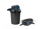Průtoková filtrační sada: filtr s UVC zařízením a filtračním čerpadlem. Filtrační set pro okrasné jezírko o objemu 5 m3 vody, s rybami 2,5 m3 vody a s chovnými rybami 1,3 m3.