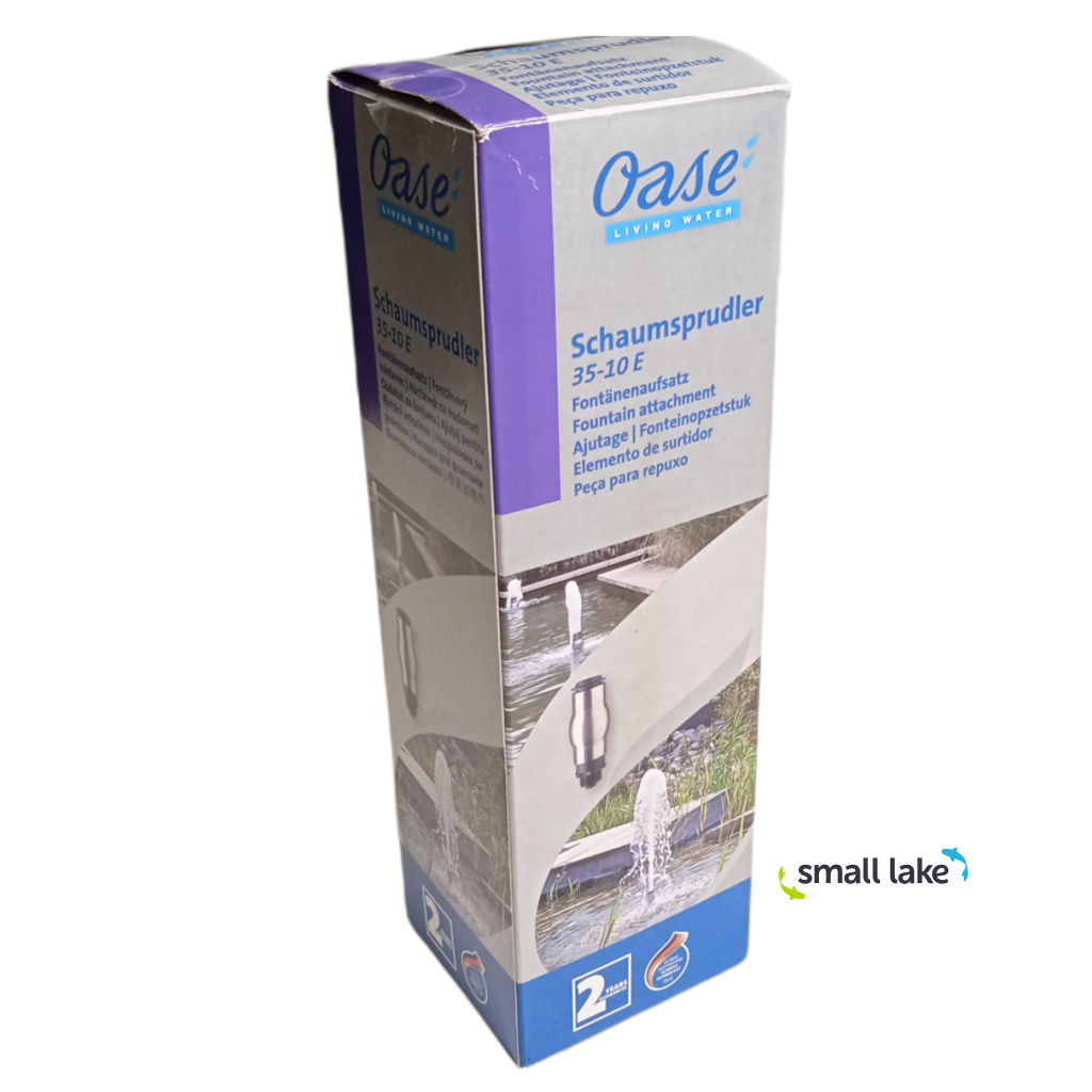 Fontánová tryska Oase 35-10E pro pěnové efekty. Podle použitého čerpadla je pak možno regulovat velikost nebo výšku vodního efektu fontány, lze použít malá čerpadla pro menší vodní hry, ale i velká a plynule regulovatelná čerpadla pro dosažení vodních efektů o výšce či průměru několika metrů. Velkou předností je také silné obohacení vody kyslíkem, což výrazně zlepšuje kvalitu vody v jezírku.
