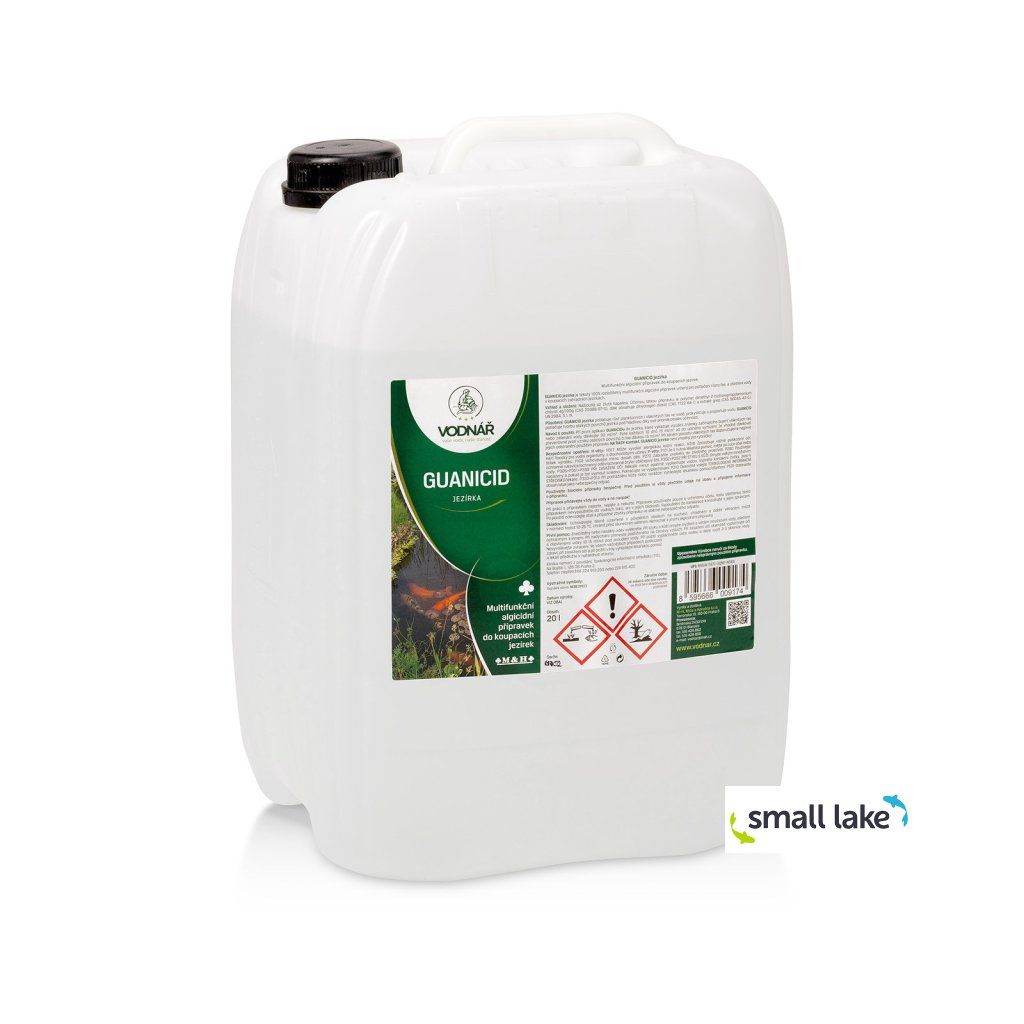 Vodnář GUANICID je kapalný, biologicky odbouratelný algicid určený pro koupací jezírka bez ryb a bez biologické filtrace. Díky svému multifunkčnímu účinku řeší nejčastější problémy s řasami, oslizlými povrchy a zakalenou vodou. Jediným přípravkem tak zajistíte čistou, průzračnou a esteticky působivou vodu s minimální náročností na údržbu.