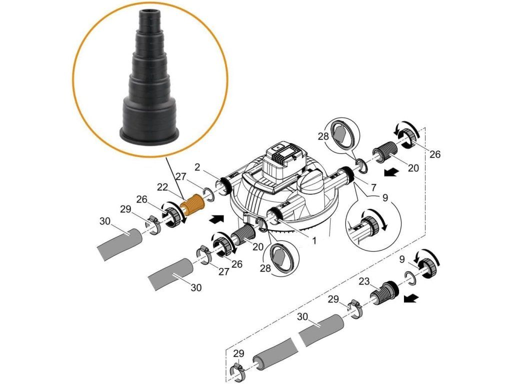 Hadicový trn Oase redukovaný 2" je nepostradatelným náhradním dílem pro každého majitele jezírka nebo vodní atrakce, který hledá spolehlivé a kvalitní řešení pro připojení spirálových nebo jiných hadic. Tento stupňovitý koncový díl je navržen tak, aby poskytoval bezpečné a těsné spojení pro hadice o průměrech 20, 25, 32, 38 (40) a 50 mm, což zajišťuje jeho univerzální použití v různých systémech.