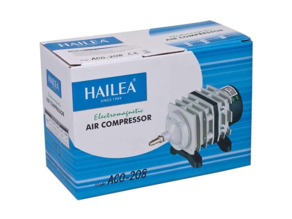Pístový bezolejový kompresor Hailea ACO 208 je spolehlivým zdrojem vzduchu pro zahradní jezírka, akvária, rybí chovy i domácí ČOV. Oproti membránovým vzduchovačům nabízí vyšší výkon a dlouhou životnost. Robustní tělo ze slitiny hliníku ZL102 se žebrováním zajišťuje efektivní chlazení a odolnost vůči venkovním podmínkám (IP44, UV odolnost).