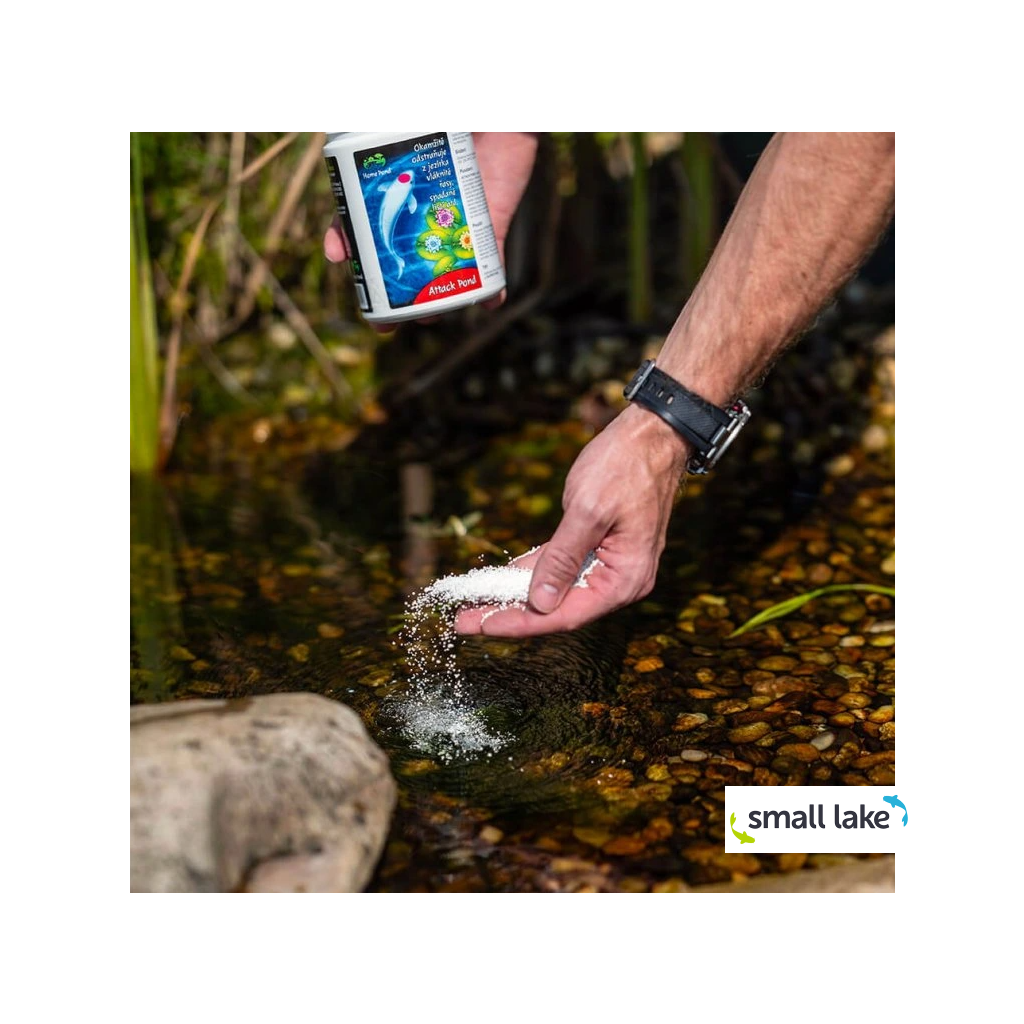 Upozornění: Použití Attack Pond je zcela bezpečné pro vodní rostliny, ryby i všechny ostatní živočichy. Voda z jezírka se po aplikaci dá bez obav využít i k zalévání zahrady.