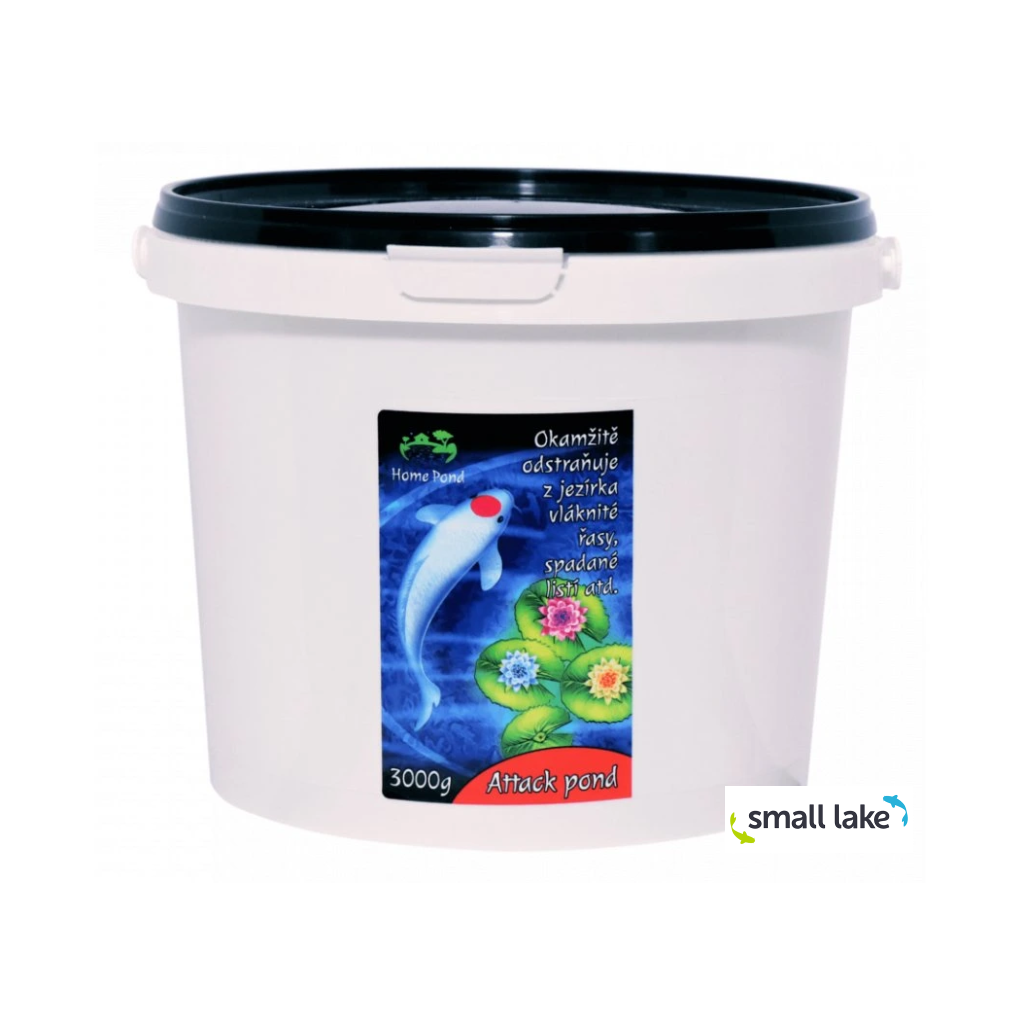Attack Pond je sypký přípravek na bázi aktivního kyslíku, který rychle odstraňuje vláknité řasy, zetlelé listí, odumřelé části rostlin a další pevné nečistoty ze dna jezírka.