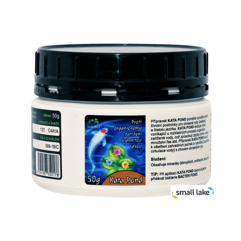 - Balení 50 g vystačí na celou sezónu (duben–říjen) pro jezírko o objemu přibližně 2 m³ vody.
