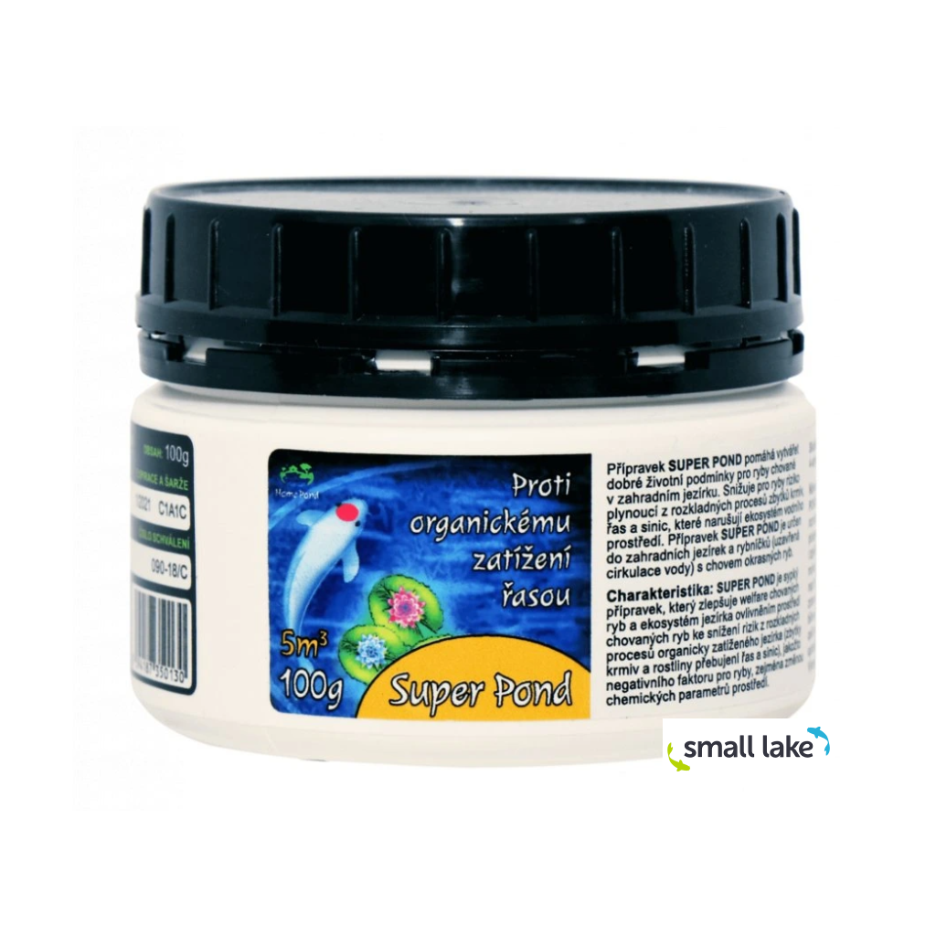 Super Pond je sypký přípravek proti vláknité a jednobuněčné řase (zelené vodě a sinicím), který nabízí dlouhodobý účinek již po jednorázové aplikaci. Je bezpečný pro ryby a ostatní živočichy (ptáky, hmyz, savce), ale není vhodný do jezírek s lekníny – při vyšším předávkování může dojít k poškození květenství.