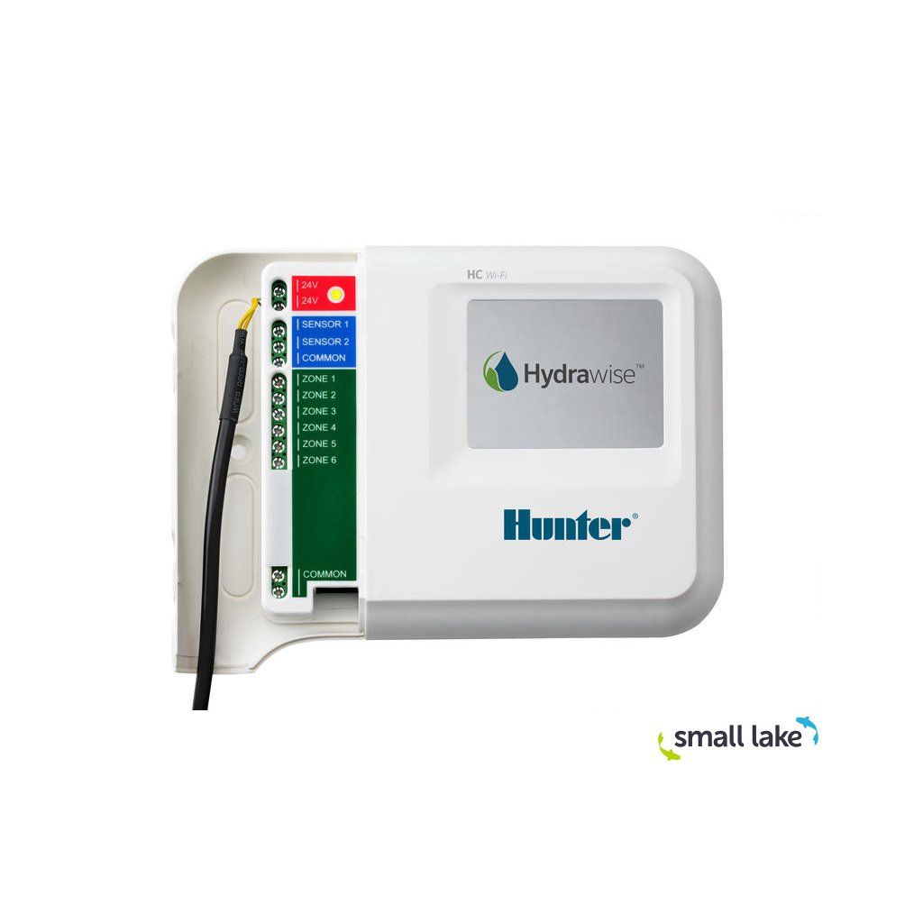 Hunter HC 6-i je pokročilá inteligentní řídicí jednotka navržená pro efektivní řízení zavlažovacích systémů v menších zahradách, parcích a komerčních prostorech. Tato jednotka umožňuje správu až 6 zavlažovacích sekcí s maximální délkou závlahy 24 hodin. Díky integrovanému Wi-Fi připojení a softwaru Hydrawise můžete snadno ovládat a přizpůsobovat zavlažování aktuálním klimatickým podmínkám přímo z vašeho chytrého zařízení.