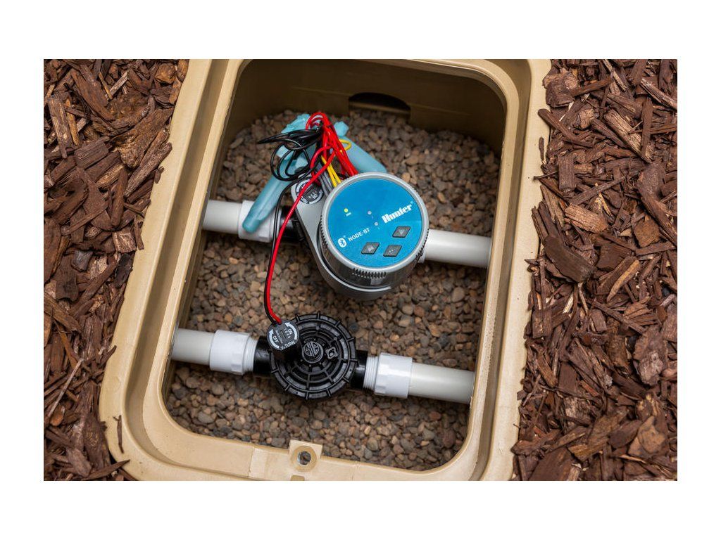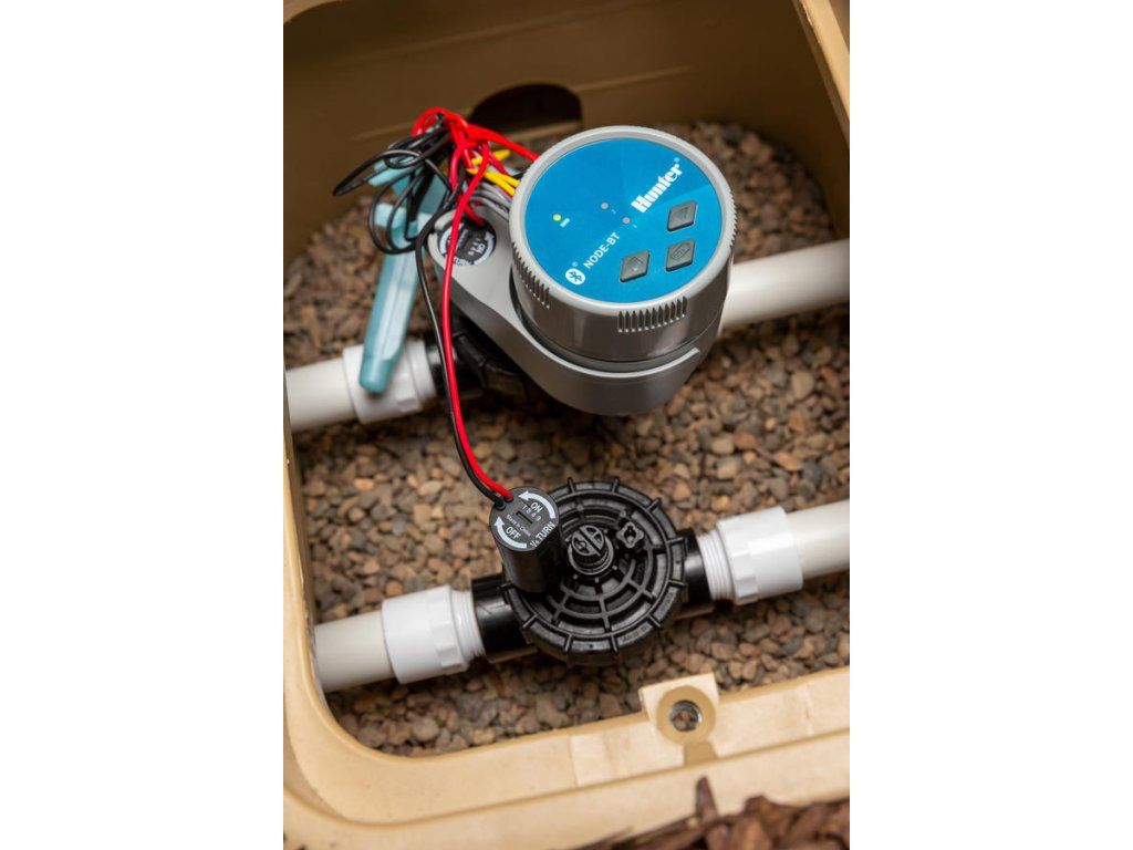 Hunter NODE 100 je inovativní vodotěsná řídicí jednotka navržená pro efektivní řízení zavlažovacích systémů v oblastech bez přístupu k elektřině. Tato jednotka podporuje jednu zavlažovací sekci a je vybavena 9V bistabilní cívkou, která umožňuje spolehlivé ovládání ventilů s minimální spotřebou energie. Díky Bluetooth připojení a aplikaci NODE-BT je možné pohodlně spravovat zavlažování přímo z chytrého telefonu, aniž by bylo nutné otevírat ventilovou šachtu.