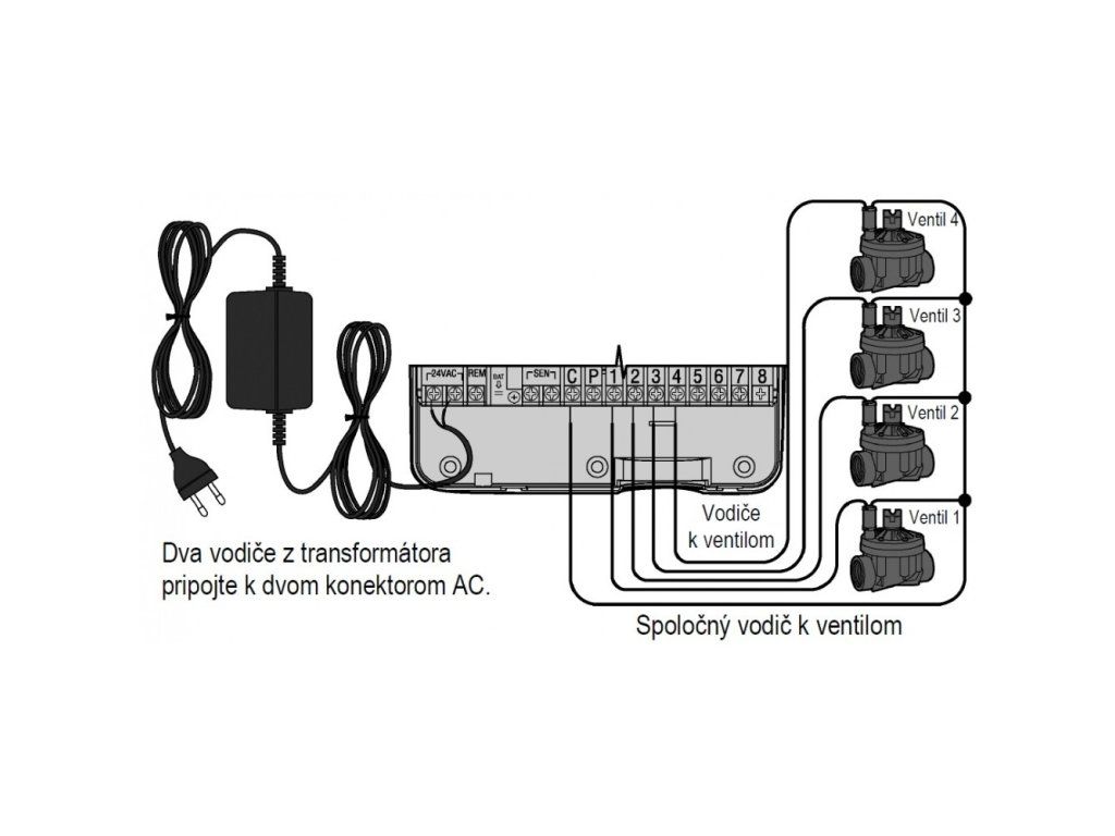 Jednotka podporuje připojení dešťového senzoru, půdního čidla a dálkového ovládání ROAM. Díky funkci QuickCheck je možná rychlá diagnostika kabeláže, zatímco paměť Easy Retrieve zajišťuje zálohu nastavení. Balení obsahuje napájecí transformátor 230/24 V AC.