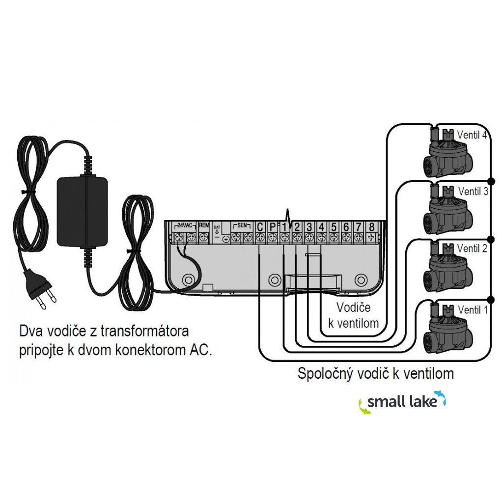 Jednotka podporuje připojení dešťového senzoru, půdního čidla a dálkového ovládání ROAM. Díky funkci QuickCheck je možná rychlá diagnostika kabeláže, zatímco paměť Easy Retrieve zajišťuje zálohu nastavení. Balení obsahuje napájecí transformátor 230/24 V AC.