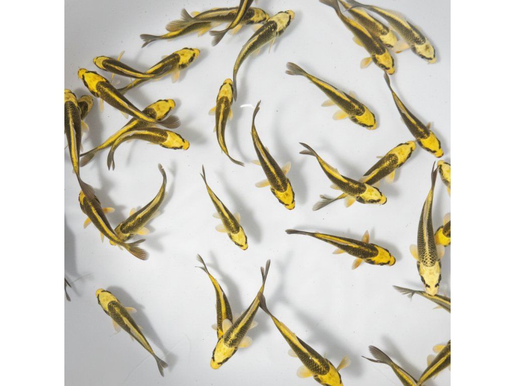 Objevte jedinečnou krásu nového typu japonského kapra Koi s názvem Kin Matsuba známá svou uniformní zlatou barvou s černými skvrnkami na šupinách.