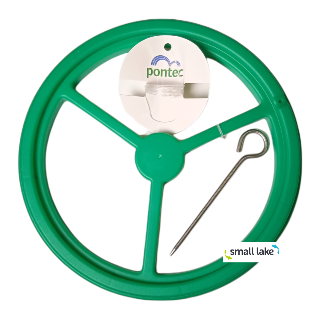 Kroužek lze snadno upevnit k okraji jezírka nebo ke dnu pomocí přiloženého upevňovacího materiálu – zemního hrotu a šňůry (2,5 m).