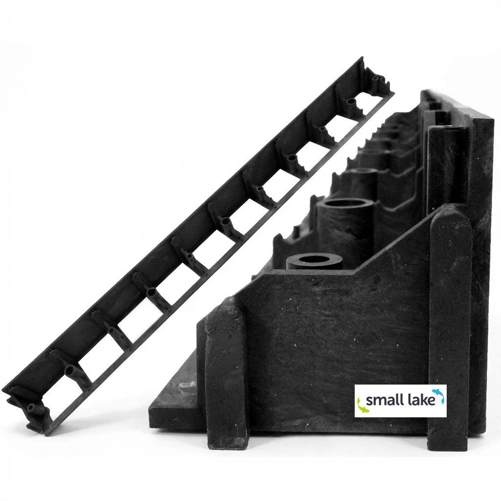 Obrubník je vyroben z polypropylenu, který je známý vysokou odolností a pevností při nízké hmotnosti. To znamená snadnou manipulaci při montáži, ale zároveň stabilní výsledek po usazení. Kotvení se provádí pomocí hřebů (nejsou součástí, pokud není uvedeno jinak), obrubníky se mezi sebou propojují zámkem, čímž vzniká souvislá linie.