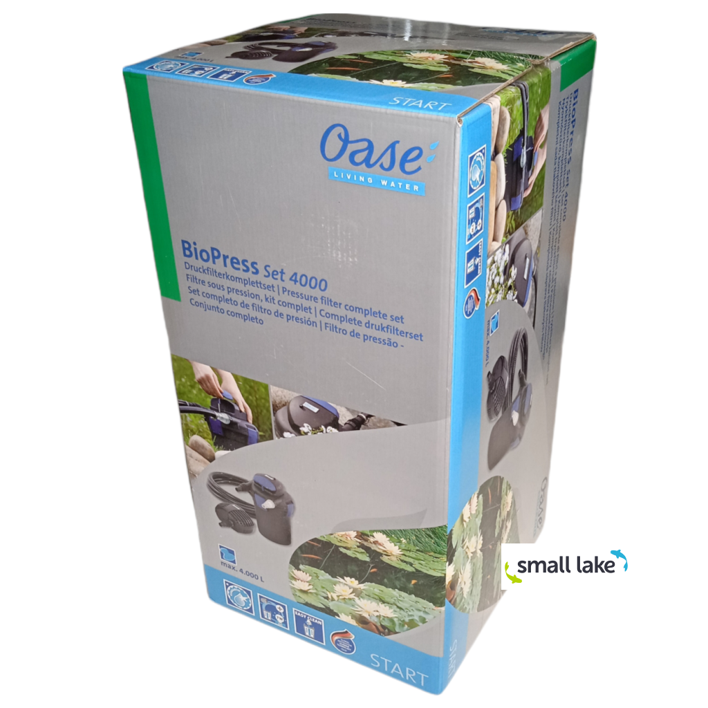 Sestava renomované značky OASE BioPress set 4000 je vhodná pro okrasné jezírko 4 m3 vody nebo pro jezírko s rybami 2m3 vody.