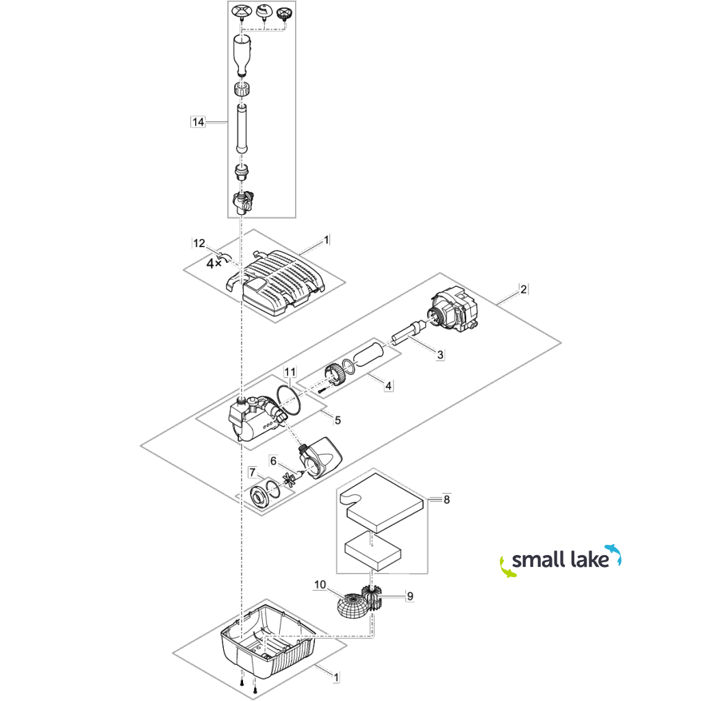 Podvodní filtr s UVC zařízením a vodní hrou.