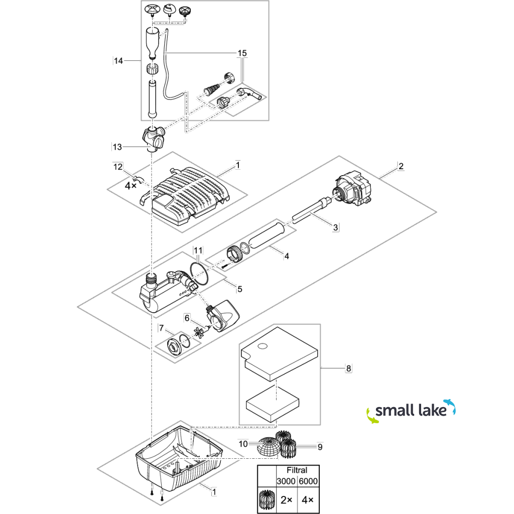 kompaktní filtrační jednotka s UVC technologií a 4 různými filtračními materiály