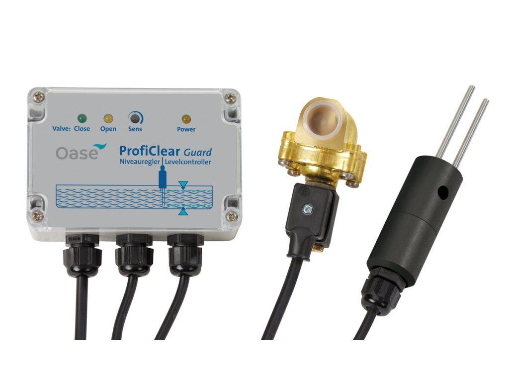 Oase ProfiClear Guard je inovativní řešení pro automatické udržování stálé hladiny vody ve vašem zahradním jezírku. Tento systém eliminuje potřebu ručního sledování a doplňování vody, což zajišťuje konstantní a esteticky příjemnou hladinu vody, ideální pro bezproblémový provoz filtračních systémů s gravitačním napájením, jako je ProfiClear.