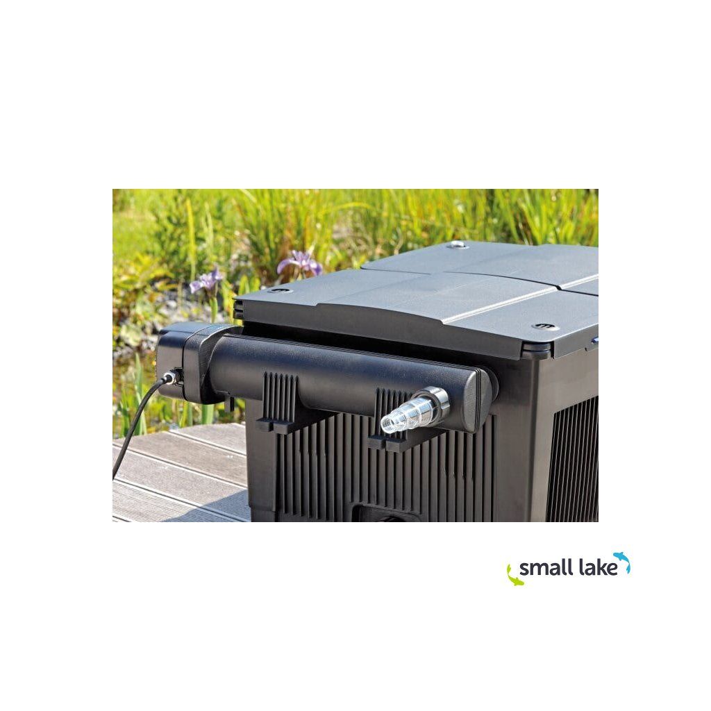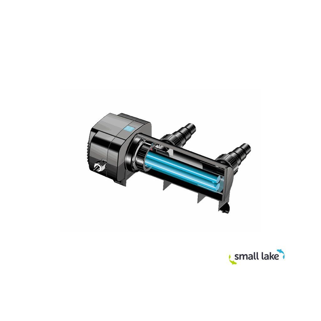 Návod na použití: Zkontrolujte, zda skleněný válec UV lampy není poškozen. S poškozeným válcem nelze UV lampu provozovat. Nainstalujte přiloženou zářivku.Při montáži zářivku uchopte u patice (nikoliv za sklo) a nasaďte do objímky. Na vývody UV lampy připojte hadice. Jeden konec hadice nasaďte na výstup čerpadla a druhý na vstup do jezerního filtru. Pokud dojte k poškození přívodního kabelu vyřaďte lampu z provozu.