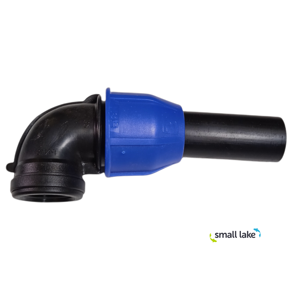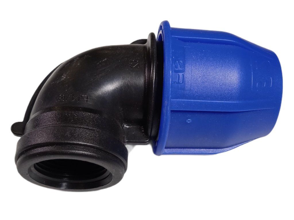 Koleno PE 32 × 1" s vnitřním závitem je mechanická (kompresní) tvarovka určená pro bezpečné a rychlé napojení PE potrubí na závitové armatury při současné změně směru potrubí. Typicky se používá tam, kde potřebujete vyvést rozvod do rohu nebo k armatuře a přejít z potrubí Ø 32 mm na standardní závit 1" (vnitřní) například k ventilům, filtrům, rozvodným prvkům nebo dalším závitovým komponentům.