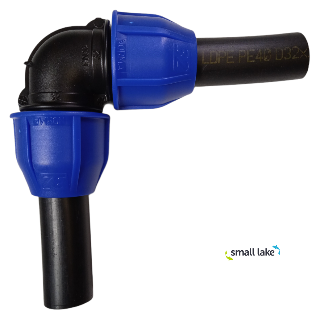 PE koleno 32 mm je mechanická tvarovka určená pro spojování PE potrubí a vytvoření kolena (změny směru vedení) v rozvodech vody a závlahových systémech. Je navržené pro potrubí z nízkohustotního polyethylenu (PE‑LD) a středněhustotního polyethylenu (PE‑MD) v jednovrstvém i dvouvrstvém provedení (PE‑MD / PE‑LLD). U systémů, kde nevznikají tlakové rázy, lze koleno použít i na flexibilní PE‑HD (PE 80).