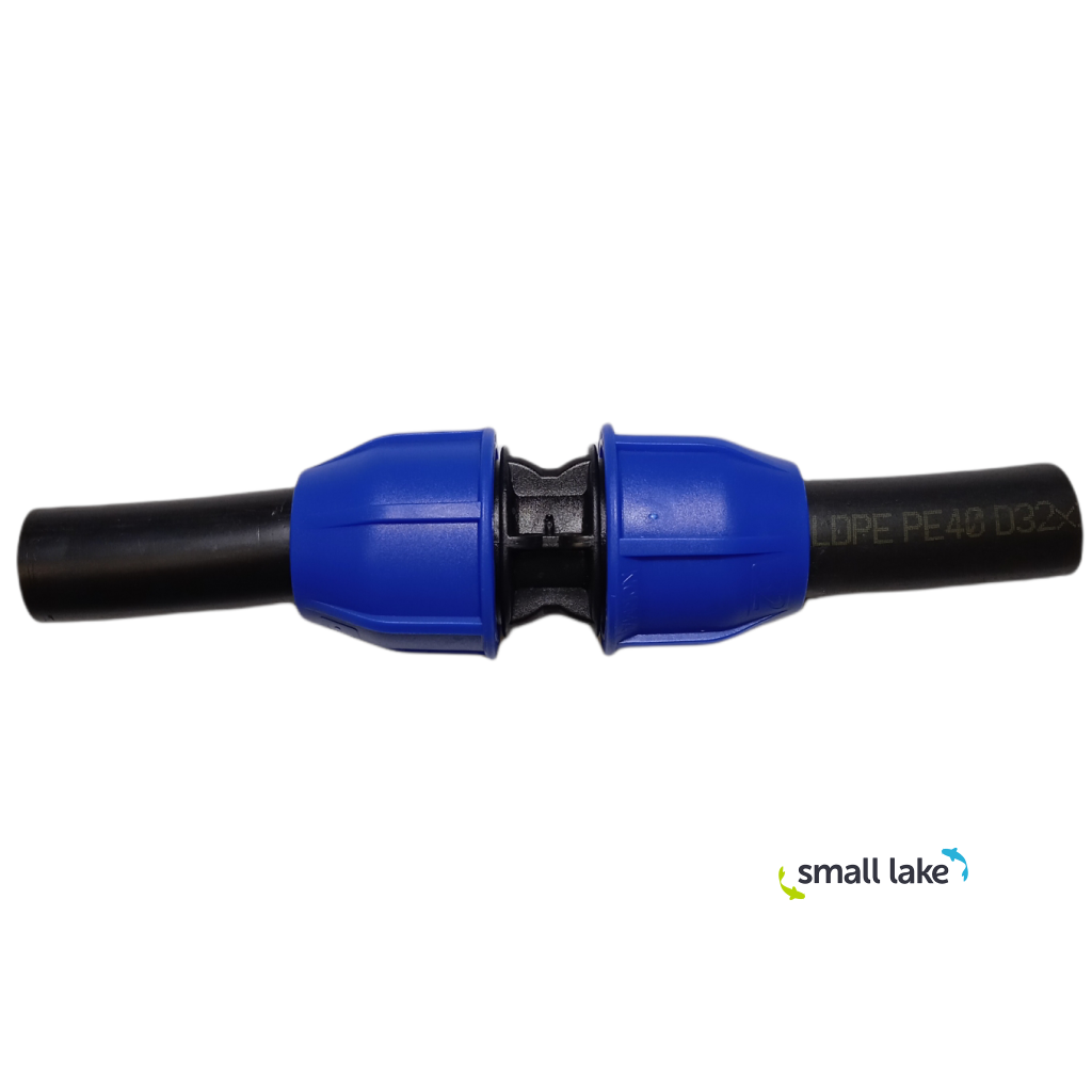 PE spojka 32 mm (přímá 32×32) slouží k mechanickému spojování potrubních rozvodů, zejména v závlahových systémech a vodovodních instalacích. Je určená pro potrubí z polyethylenu s vnějším průměrem 32 mm a umožňuje rychlé propojení dvou úseků potrubí bez lepení, svařování nebo složité přípravy.