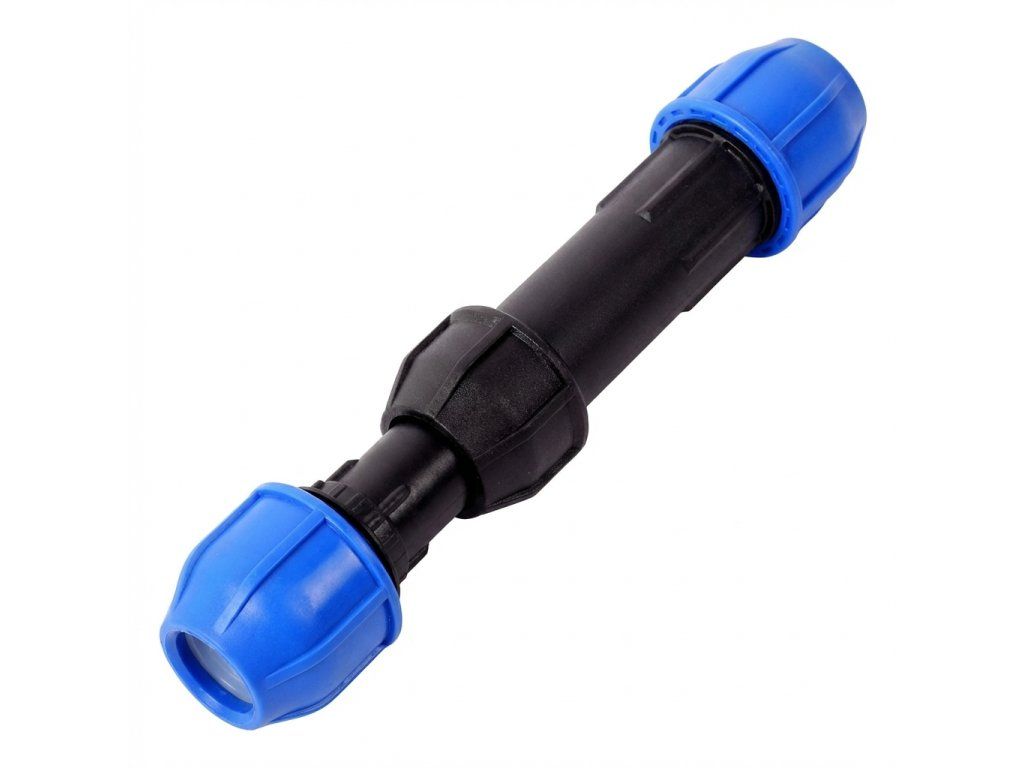 Teleskopická PE spojka 32 mm slouží k rychlému a spolehlivému propojení dvou úseků polyetylenového potrubí, zejména při opravách poškozených rozvodů nebo při dodatečných úpravách závlahových systémů. Její hlavní výhodou je délková nastavitelnost – spojka se vysouvá/zasouvá, a tím se přizpůsobí reálné vzdálenosti mezi dvěma pevnými konci potrubí.