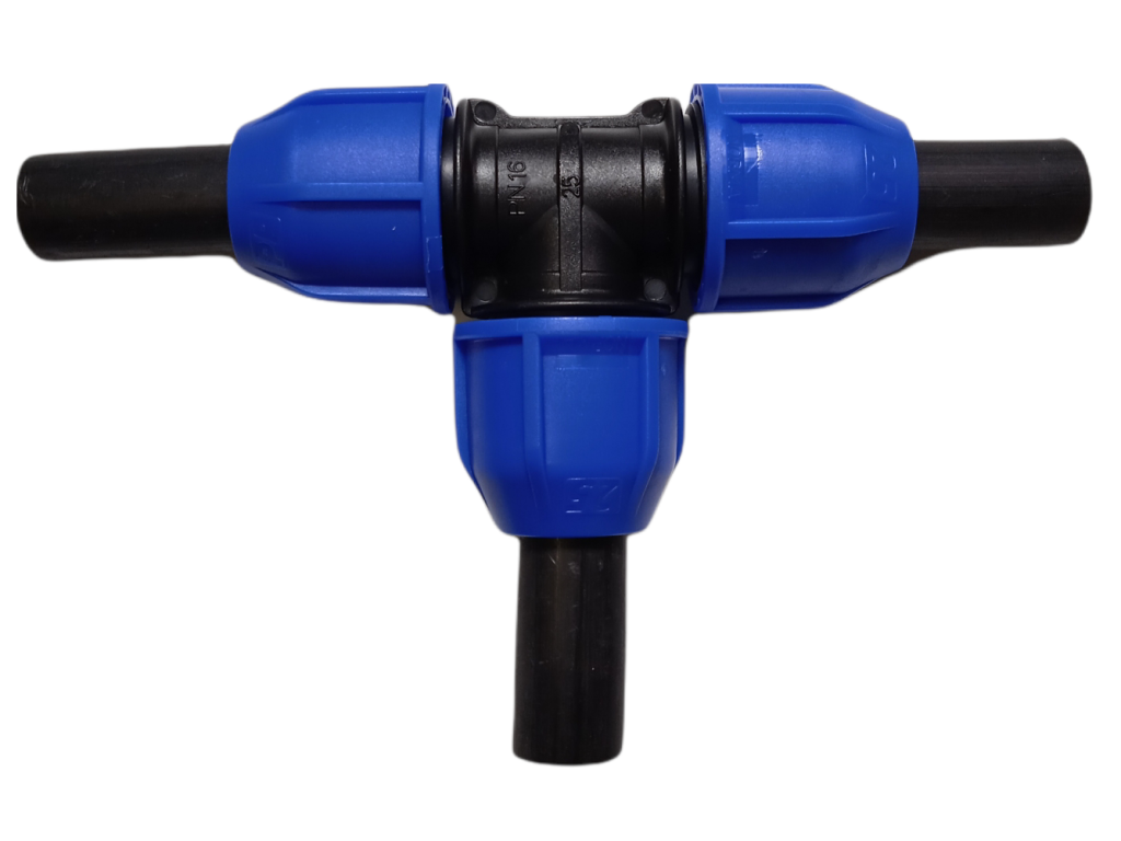 T‑kus se běžně používá pro mechanické spojování vodních systémů určených k rozvodu kapalin v závlahách, přípojkách a rozvodech vody, kde potřebujete rychle a čistě odbočit do další větve.