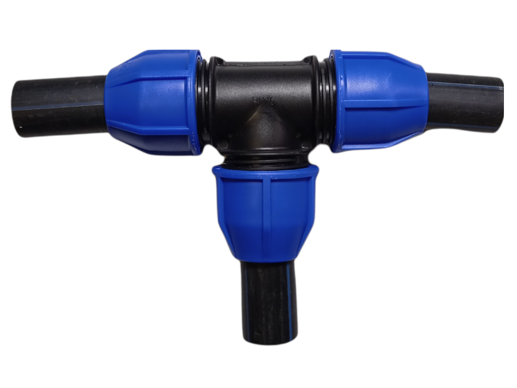 T‑kus se běžně používá pro mechanické spojování vodních systémů určených k rozvodu kapalin v závlahách, přípojkách a rozvodech vody, kde potřebujete rychle a čistě odbočit do další větve.