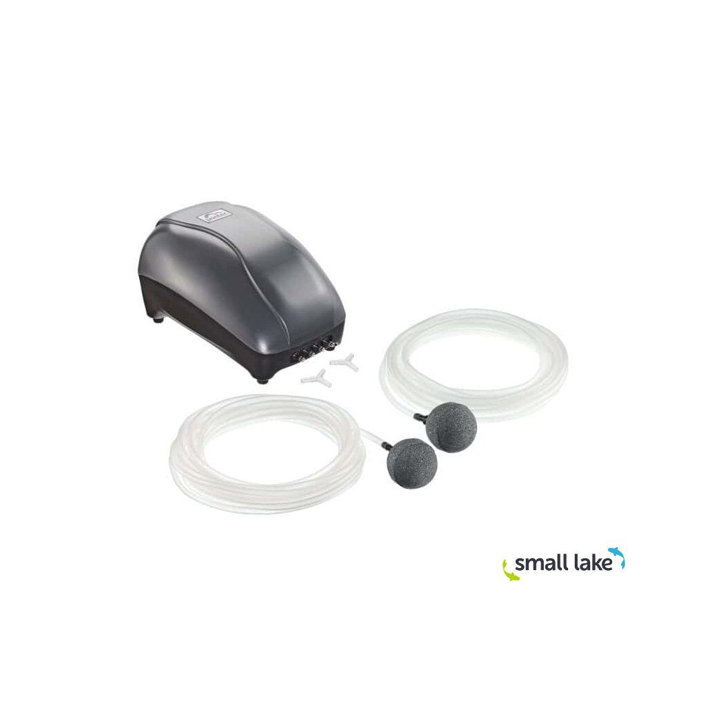 Kompletní provzdušňovací set Pontec PondoAir Set 900 určený pro spolehlivé dodávání kyslíku do zahradních jezírek, nádrží i akvárií. Vzduchovací kompresor s výkonem 900 l/h a příkonem 12 W zajistí optimální okysličení vody až do hloubky 1,5 m. Je vhodný pro celoroční provoz – v zimě pomáhá udržet nezamrzlé místo na hladině.