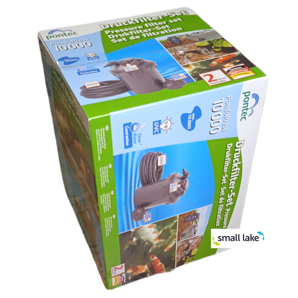 PondoPress 10000 Set je filtrační sestava vhodná pro zahradní jezírka do maximálního objemu 10000 litrů vody bez ryb. V případě zarybnění je vhodná pro jezírka do maximálního objemu 5000 litrů. Je tvořena tlakovým filtrem s integrovanou UV lampou 9W proti vzášejícím se řasám a jezírkovým čerpadlem s max. výkonem 2500 l/hod. Maximální výtlačná výška čerpadla je 2,2 metrů.