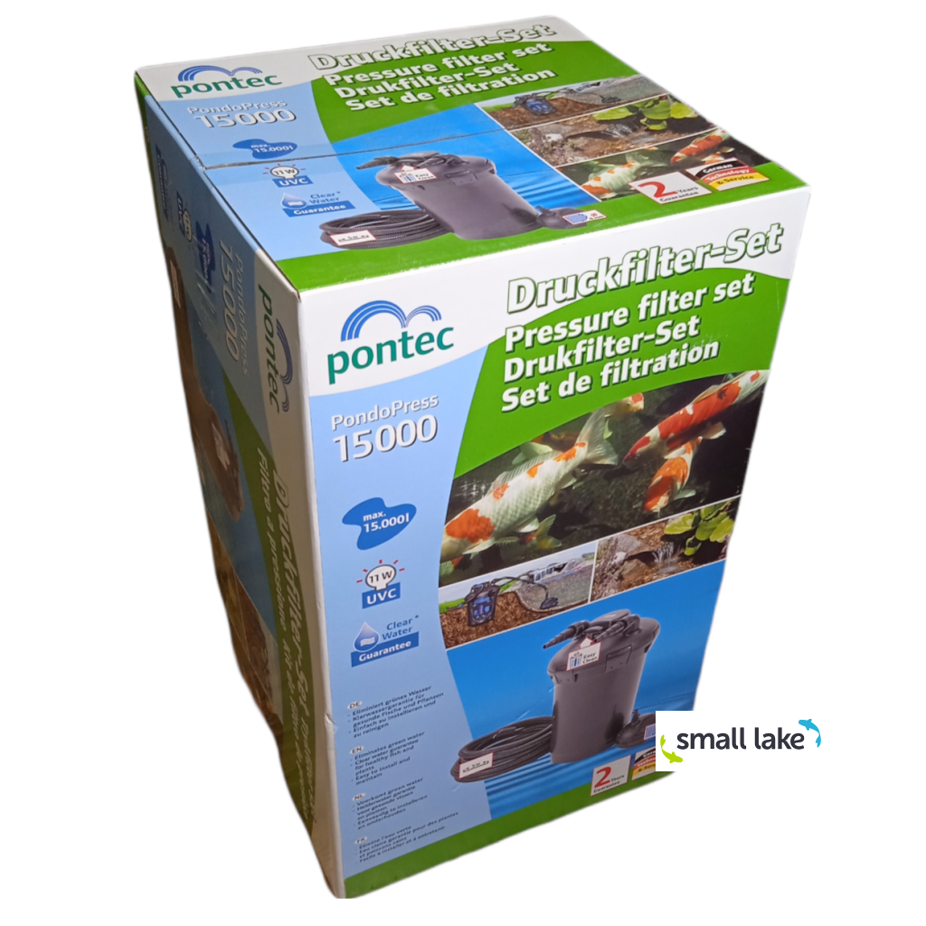 PondoPress 15000 Set je filtrační sestava vhodná pro zahradní jezírka do maximálního objemu 15000 litrů vody bez ryb. V případě zarybnění je vhodná pro jezírka do maximálního objemu 7500 litrů. Je tvořena tlakovým filtrem s integrovanou UV lampou 11W proti vzášejícím se řasám a jezírkovým čerpadlem s max. výkonem 2500 l/hod. Maximální výtlačná výška čerpadla je 2,2 metrů.