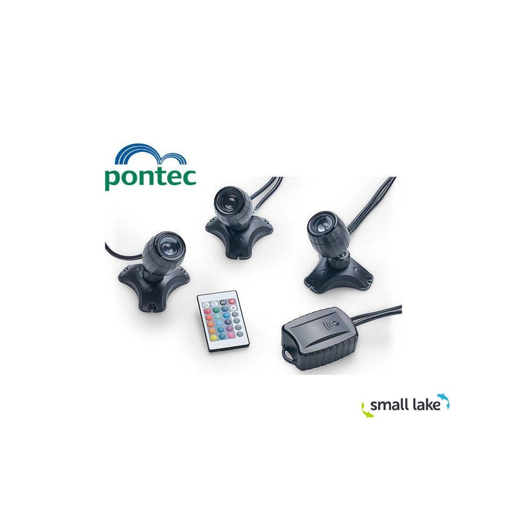 Set tří LED barevných reflektorů Pontec PondoStar LED RGB Set 3 lze ovládat dálkově jsou použitelné pro zahradní okrasná i koupací jezírka, vodotrysky, rybníky, nadže atd.