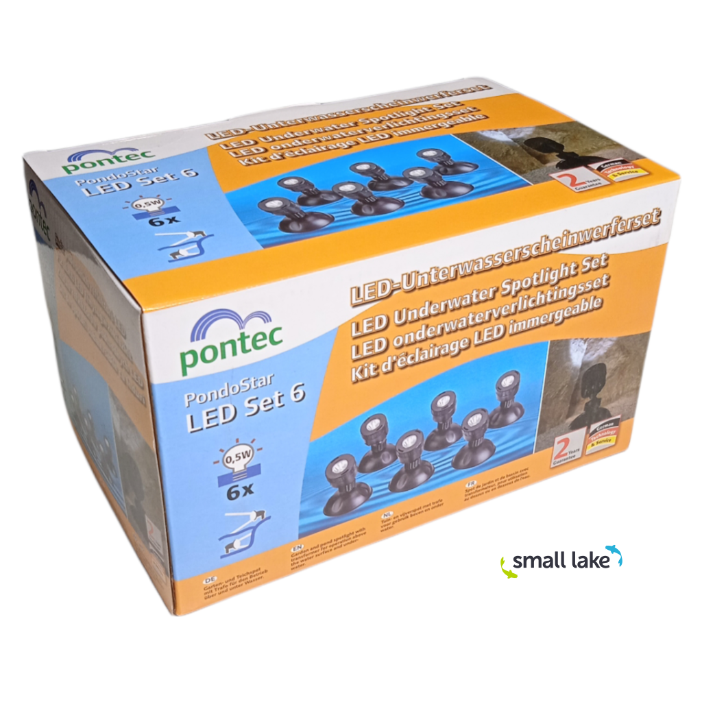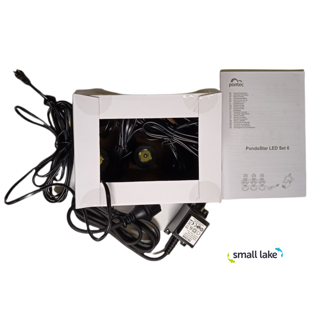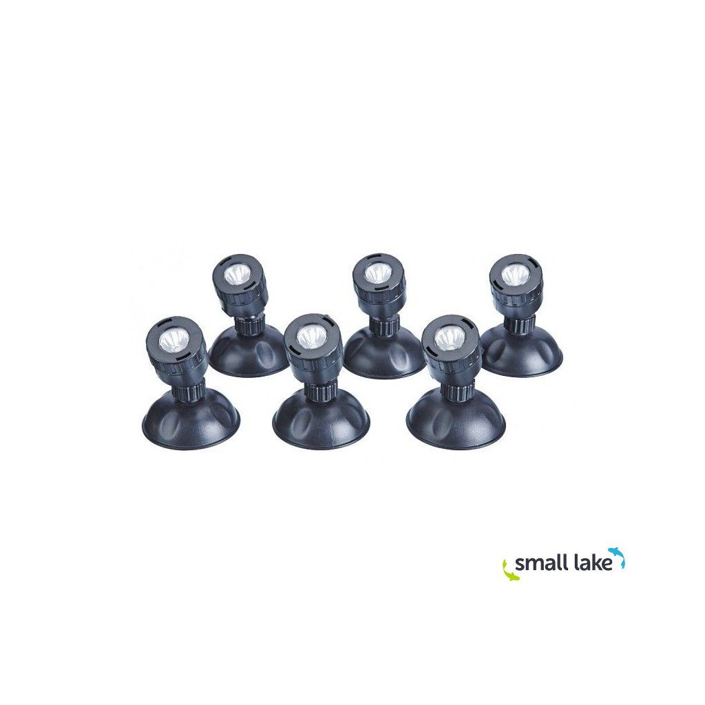 Sada šesti led-diodových, úsporných světel pro zahradní jezírka, koupací jezírka, rybníky, nádrže a pod. Světla jsou v černém plastovém provedení. Sériové zapojení od trafa 12 V, kabel 3 m + 5 x 1,2 m.