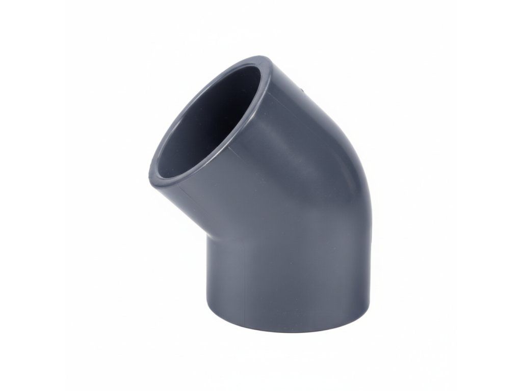 PVC koleno 50 mm 45° je skvělým řešením pro efektivní propojení potrubí ve vašem jezírkovém nebo bazénovém systému. Díky svému 45° úhlu umožňuje hladký tok vody a je navrženo tak, aby zajistilo dlouhodobou spolehlivost a odolnost.