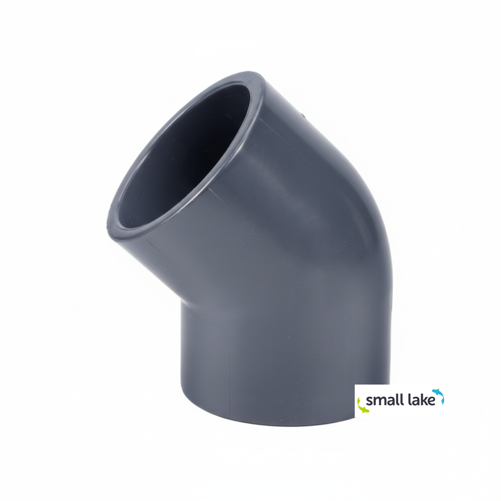 PVC koleno 63 mm 45° je skvělým řešením pro efektivní propojení potrubí ve vašem jezírkovém nebo bazénovém systému. Díky svému 45° úhlu umožňuje hladký tok vody a je navrženo tak, aby zajistilo dlouhodobou spolehlivost a odolnost.