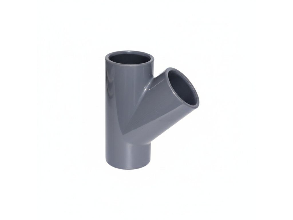 PVC Y-kus 50 mm je navržen pro efektivní propojení tří trubek pod úhlem 45°, což minimalizuje tlakové ztráty a zajišťuje plynulý průtok vody. Tento prvek je ideální pro široké spektrum aplikací.