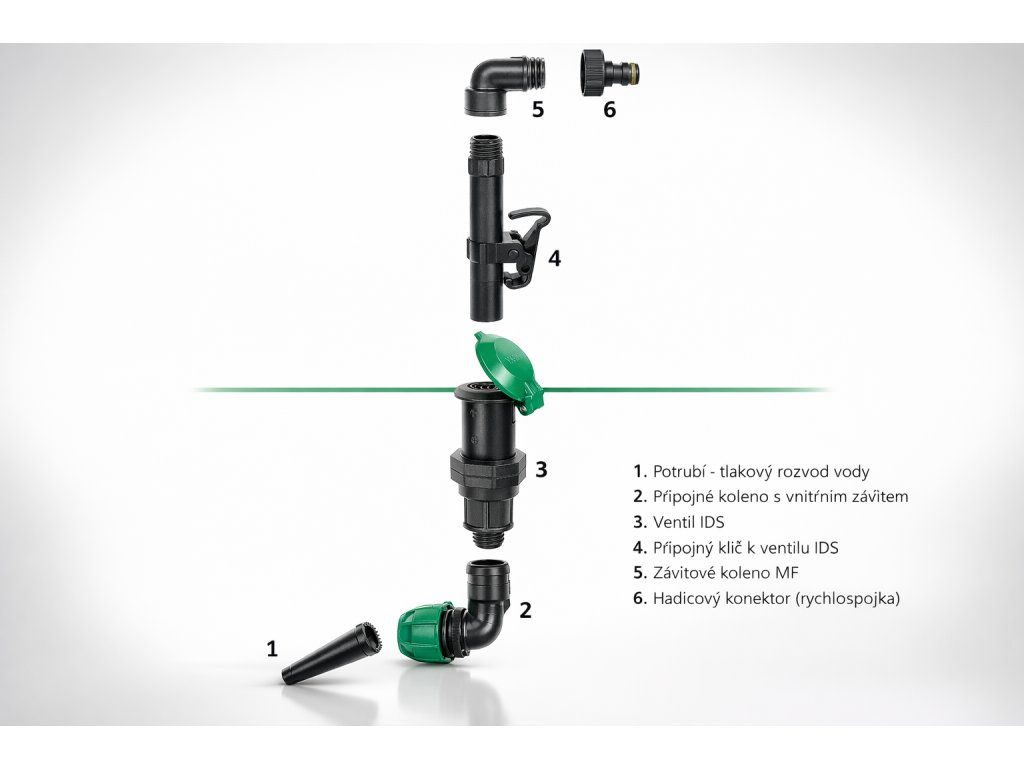 Plastový rychlospojný ventil 1" je praktické řešení pro každého, kdo chce mít na zahradě rychlý přístup k vodě bez složité manipulace s kohoutky a nadzemními rozvody. Hydrant se instaluje jako výstup na podzemní potrubí (připojení zespodu přes 1" vnější závit) a funguje na jednoduchém principu: zásuvka je díky zpětné klapce pod trvalým tlakem vody a jakmile klíčem stlačíte klapku, voda začne téct. Po vyjmutí klíče se hydrant uzavře.