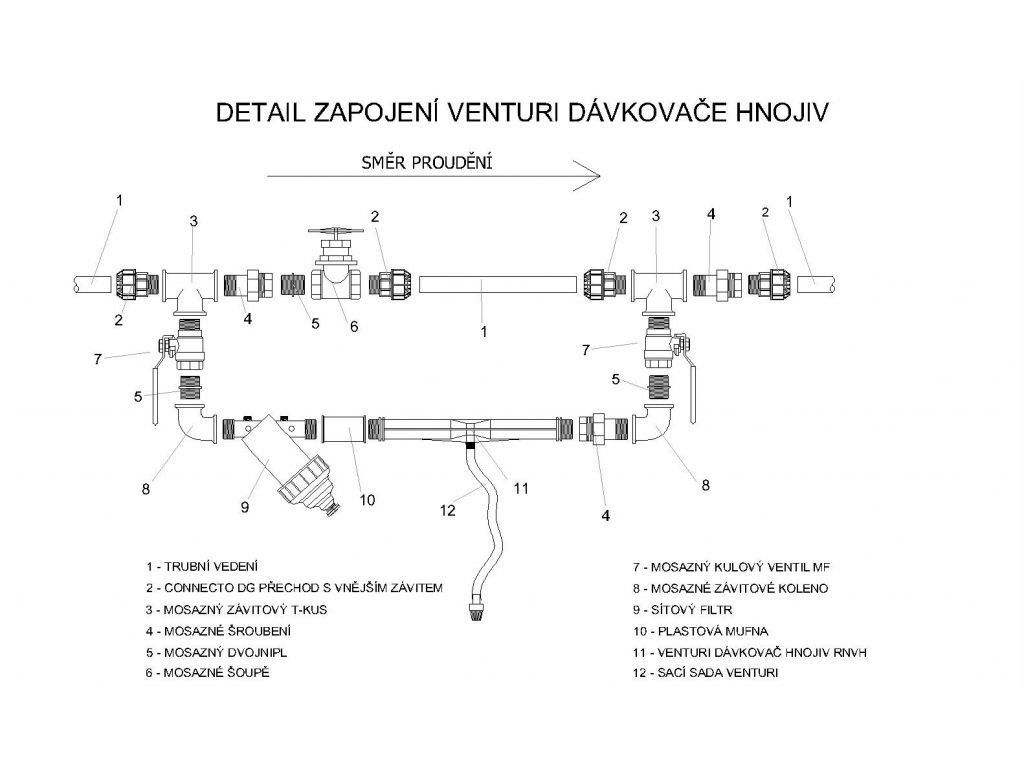 Sací sada Venturi slouží s 1" Venturi dávkovačem k přisávání tekutého hnojiva do závlahových systémů.