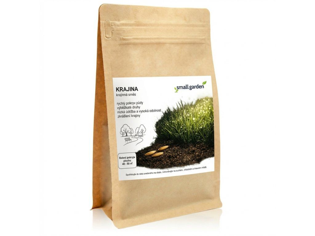 Small Garden Krajina 1 kg je krajinná travní směs určená pro ozelenění velkých ploch, kde je prioritou rychlé zapojení porostu, estetický vzhled a nízké nároky na běžnou údržbu – typicky louky kolem objektů, okraje pozemků, sady, rekultivace nebo volné plochy v krajině.