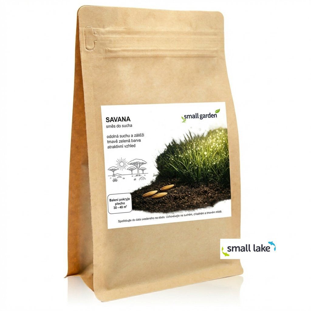 Small Garden Savana 1 kg – travní osivo odolné vůči suchu je směs, která je postavená na tom nejdůležitějším pro letní měsíce: odolnosti k suchu a schopnosti udržet si atraktivní vzhled i při omezené vláze.