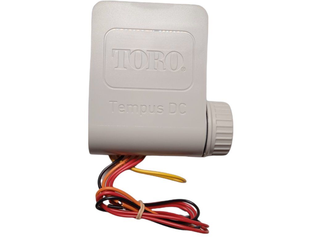 Toro TEMPUS DC je moderní bateriová řídicí jednotka navržená pro efektivní řízení zavlažovacích systémů na místech bez elektrického připojení. Tato jednotka umožňuje ovládání dvou zavlažovacích sekcí a je napájena 9V baterií, což zajišťuje její nezávislost na elektrické síti. Díky integrované Bluetooth technologii lze jednotku snadno ovládat prostřednictvím aplikace Tempus App na chytrých telefonech, což usnadňuje nastavení a přizpůsobení zavlažovacích programů přesně podle vašich potřeb.