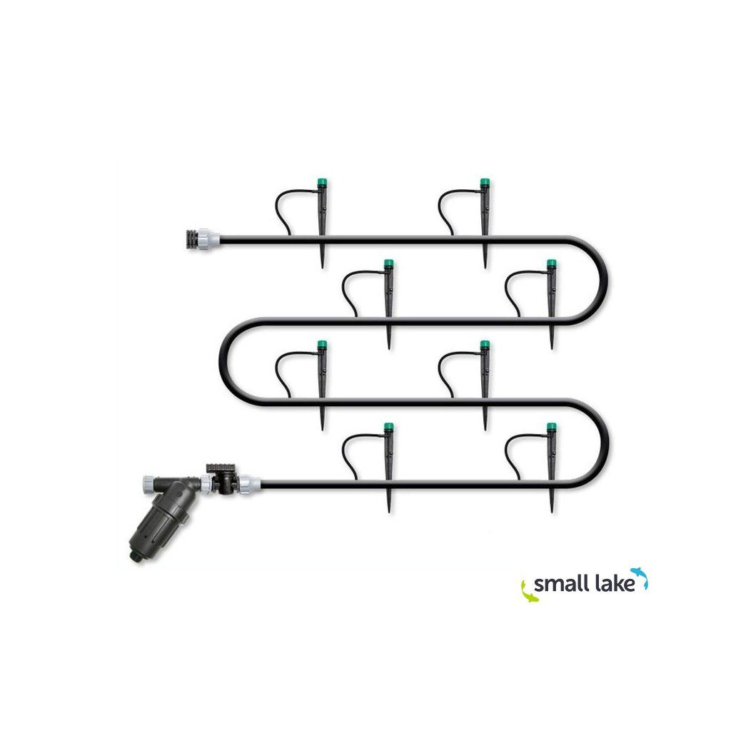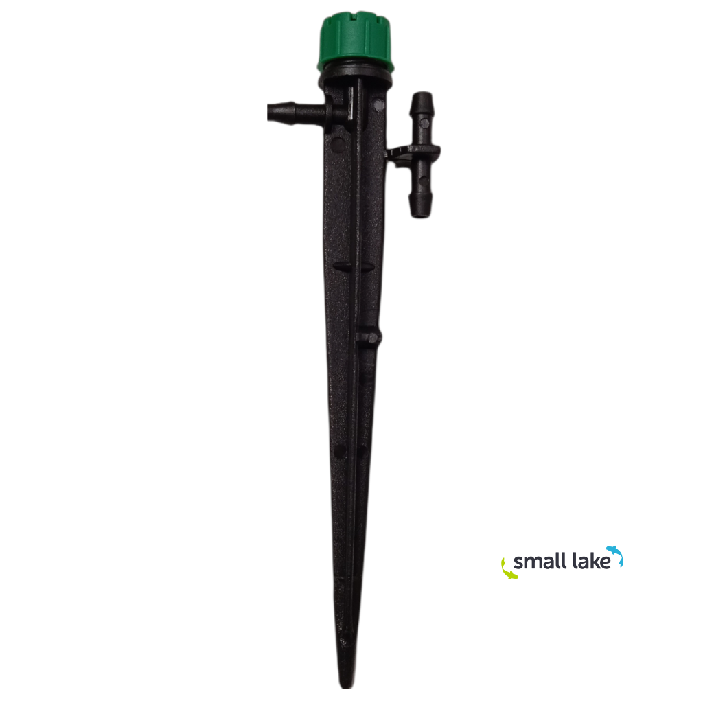 Minipostřikovač Varistake je nastavitelný, má 8 paprsků a je celokruhový (360°). Slouží pro závlahu keřů, květin, stromů a koniferů. Výhodou je jeho možné uzavření a úprava průtoku v rozsahu 0 - 40 l/h pomocí rohatkového mechanismu.
